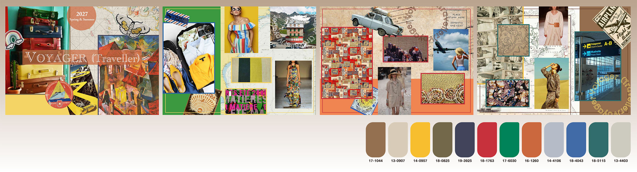 その中にスパイシーな色を入れ、ベージュやエクリュを組み合わせ、明るいノスタルジックなハーモニーカラーで展開